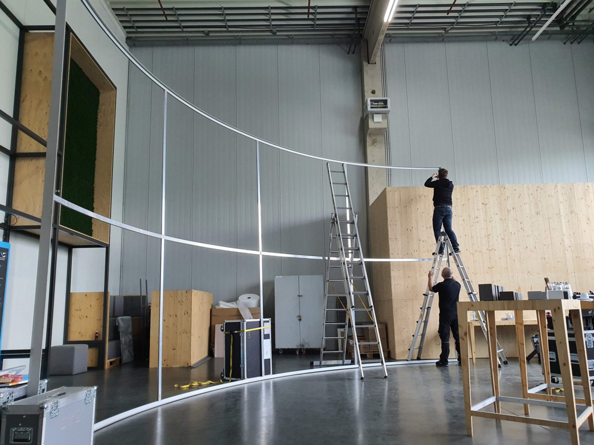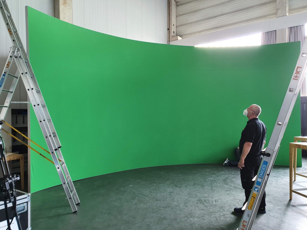 Für die Firma Vauth-Sagel Systemtechnik GmbH & Co KG, einem der führenden Herstellern von Stauraumlösungen, haben wir in deren eigenem Showroom ein Greenscreen Studio mit einer konkav gebogenen Rückwand mit der Größe von 9 x 4 m für Keying Anwendungen installieren dürfen.