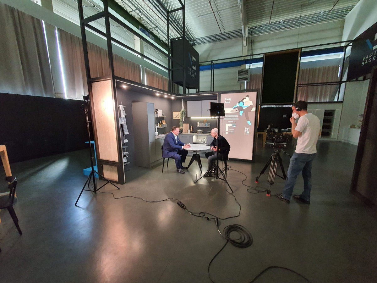 Einen ersten Einsatz hatte das neu geschaffene Studio im Rahmen der in diesem Jahr pandemiebedingt nur digital stattfindenden Messe interzum@home 2021, der Weltleitmesse für die Möbelfertigungs- und Innenausbauindustrie.